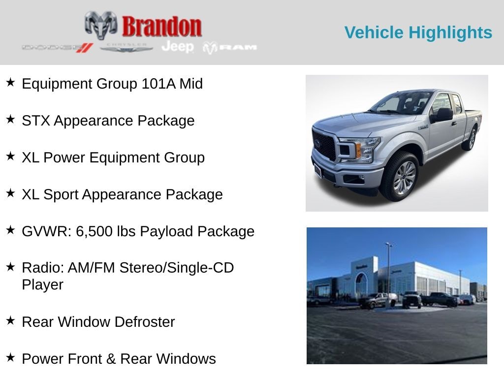 Ingot Silver 2018 Ford F-150 XL 4WD 10-Speed Automatic 2.7L V6 EcoBoost F-150 XL, Super Cab, 4WD, 20" Machined-Aluminum Wheels, 4.2" Productivity Screen in Instrument Cluster, Body-Color Front & Rear Bumpers, Body-Color Surround w/Black Mesh Insert Grille, Box Side Decals, Cruise Control, Driver/Passenger Seat Back Pocket, Equipment Group 101A Mid, Fog Lamps, GVWR: 6,500 lbs Payload Package, Illuminated Entry, Manual Driver/Passenger Lumbar, MyKey, Perimeter Alarm, Power Door Locks, Power Front & Rear Windows, Power Glass Sideview Mirrors w/Black Skull Caps, Power Tailgate Lock, Privacy Glass, Radio: AM/FM Stereo/Single-CD Player, Rear Window Defroster, STX Appearance Package, SYNC, SYNC 3, Unique Sport Cloth 40/Console/40 Front-Seats, Wheels: 17" Silver Painted Aluminum, XL Power Equipment Group, XL Sport Appearance Package.