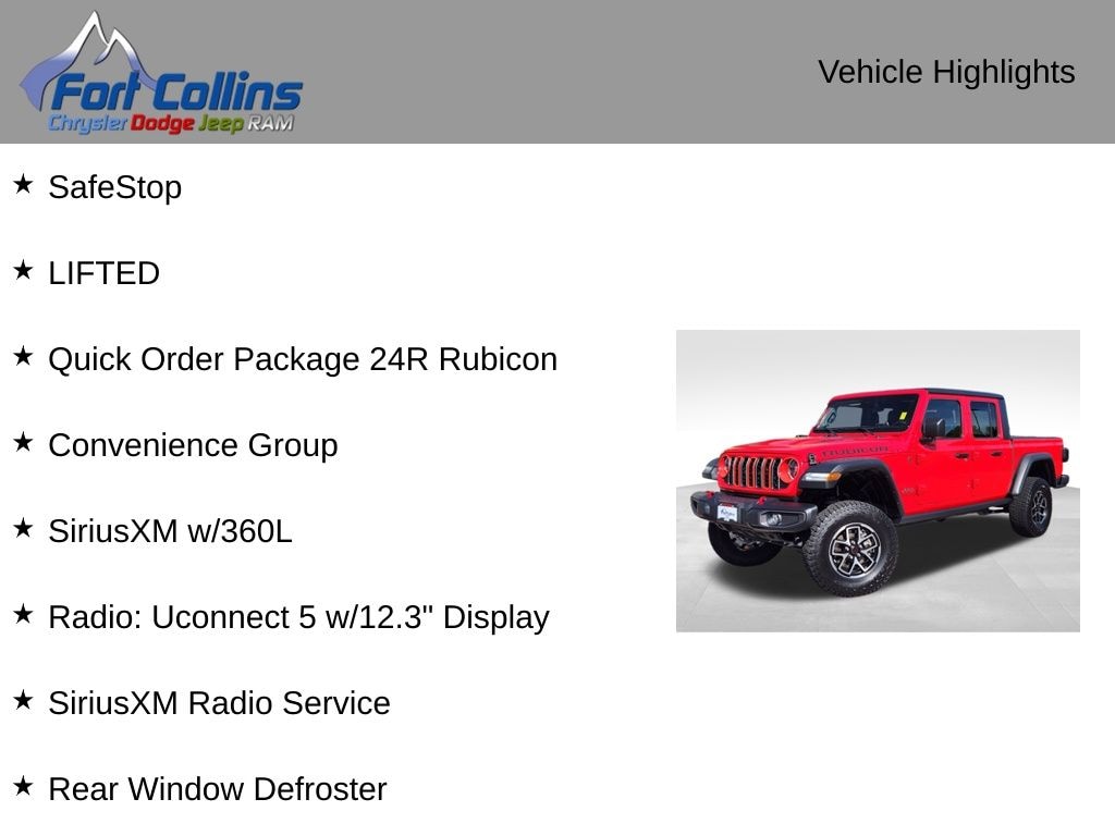 This Gladiator Rubicon is more than just a capable off-roader - it's a true expression of your adventurous spirit. With its striking Firecracker Red Clearcoat exterior and premium interior features, this Jeep is sure to turn heads wherever you go.