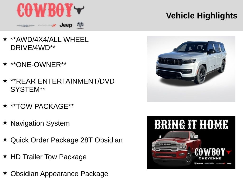 **AWD/4X4/ALL WHEEL DRIVE/4WD**, **ONE-OWNER**, **REAR ENTERTAINMENT/DVD SYSTEM**, **TOW PACKAGE**, Amazon Fire TV Built-In, Black Interior Accents, Black Roof, Gloss Black Upper & Lower DLO Molding, HD Trailer Tow Package, Heavy-Duty Engine Cooling, Navigation System, Obsidian Appearance Package, Piano Black Exterior Accents, Quick Order Package 28T Obsidian, Rear Seat Video Group 1, Removable Rear Tow Hook, Seatback Video Screens, Trailer Brake Control, Trailer Hitch Zoom, Two Tone Paint Group, Video USB Port, Wheels: 22" x 9.0" Tinted Polished w/Black Insert.