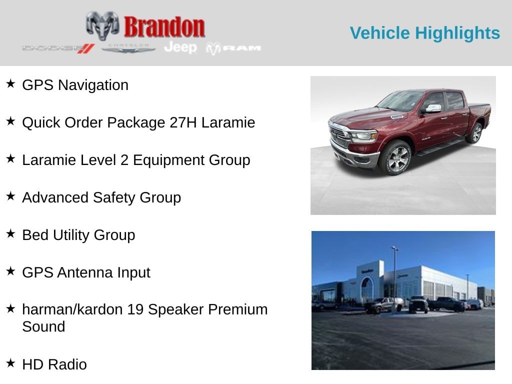 Delmonico Red Pearlcoat 2020 Ram 1500 Laramie 4WD 8-Speed Automatic HEMI 5.7L V8 Multi Displacement VVT 1-Yr SiriusXM Guardian Trial, 4 Adjustable Cargo Tie-Down Hooks, 4G LTE Wi-Fi Hot Spot, 5-Year SiriusXM Traffic Service, 5-Year SiriusXM Travel Link Service, 8.4" Touchscreen Display, Adaptive Cruise Control w/Stop & Go, Advanced Safety Group, Apple CarPlay, Auto High Beam Headlamp Control, Bed Utility Group, Blind Spot & Cross Path Detection, Deployable Bed Step, Disassociated Touchscreen Display, Foam Bottle Insert (Door Trim Panel), For Details, Visit DriveUconnect.com, Full Speed Forward Collision Warning Plus, GPS Antenna Input, GPS Navigation, harman/kardon 19 Speaker Premium Sound, HD Radio, Heated Second Row Seats, Integrated Center Stack Radio, Lane Keep Assist, Laramie Level 2 Equipment Group, Parallel & Perp Park Assist w/Stop, ParkSense Front/Rear Park Assist w/Stop, Pick-Up Box Lighting, Quick Order Package 27H Laramie, Radio: Uconnect 4C Nav w/8.4" Display, Rain Sensitive Windshield Wipers, Rear 60/40 Folding Split Recline Seat, Rear Underseat Compartment Storage, Remote Tailgate Release, SiriusXM Satellite Radio, SiriusXM Traffic Plus, SiriusXM Travel Link, Spray In Bedliner, Tailgate Ajar Warning Lamp.