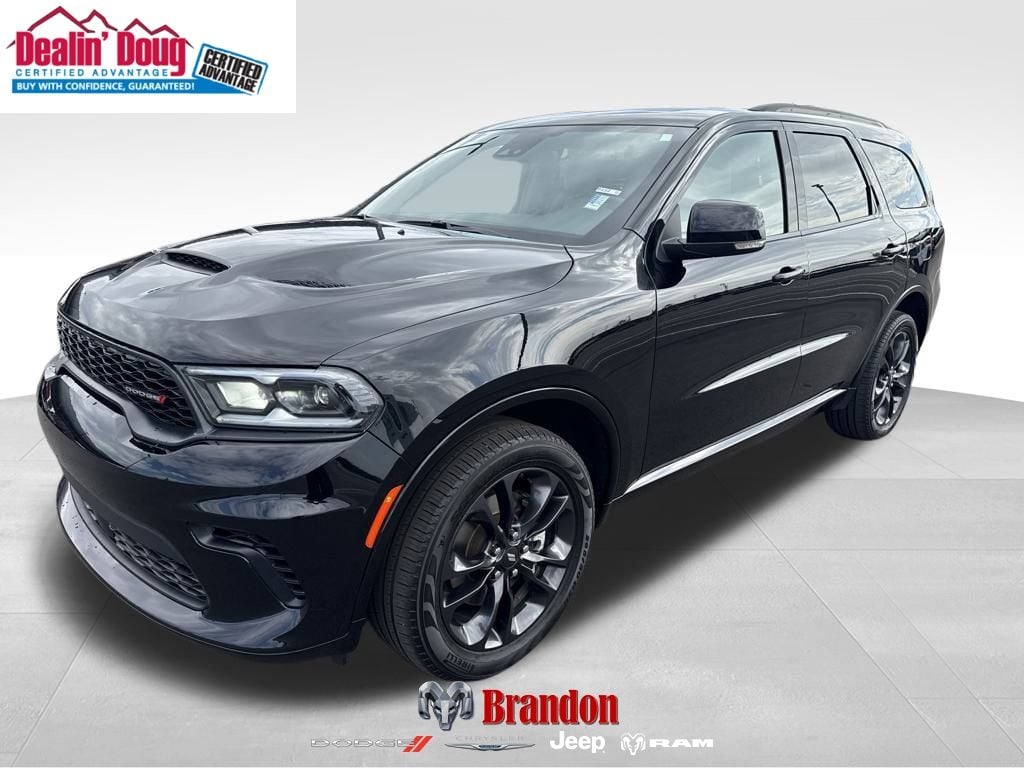 Certified. DB Black Crystal Clearcoat 2024 Dodge Durango GT Plus BLACKTOP AWD AWD 8-Speed Automatic 3.6L V6 24V VVT AWD, 1-Year Trial (Registration Required), 10.1" Touchscreen Display, 115V Auxiliary Power Outlet, 180 Amp Alternator, 4G LTE Wi-Fi Hot Spot, 7 & 4 Pin Wiring Harness, Adaptive Cruise Control w/Stop, Apple CarPlay, Auto-Dimming Exterior Driver Mirror, Automatic temperature control, Black Roof Rails, Blacktop Package, Blind Spot w/Trailer Detection, Class IV Receiver Hitch, Connected Travel & Traffic Services, Disassociated Touchscreen Display, Dual Remote USB Port - Charge Only, Exterior Mirrors w/Heating Element, Exterior Mirrors w/Memory, Exterior Mirrors w/Supplemental Signals, Floor Console w/Leather Armrest, For Details Visit DriveUconnect.com, Full Speed Forward Collision Warning Plus, Global Telematics Box Module (TBM), Gloss Black Badges, Gloss Black Exterior Mirrors, Google Android Auto, GPS Antenna Input, GPS Navigation, GT Gloss Black Badging, HD Radio, Heated Second Row Seats, Heavy-Duty Engine Cooling, Integrated Center Stack Radio, Integrated Roof Rail Crossbars, Integrated Voice Command w/Bluetooth, Leather Trimmed Bucket Seats, Leather Wrapped Door Panels, LED Auxiliary Low Beam & Turn Signal, Power 6x9 Multi-Function Foldaway Mirrors, Power 8-Way Driver Memory 8-Way Passenger Seats, Power Driver/Passenger 4-Way Lumbar Adjust, Power Sunroof, Power Tilt & Telescopic Steering Column, Quick Order Package 2BG GT Plus, Radio: Uconnect 5 Nav w/10.1" Display, Radio/Driver Seat/Mirrors Memory, Rear Load Leveling Suspension, Red Accent Stitching, Satin Black Dodge Tail Lamp Badge, SiriusXM Guardian - Included Trial (B), SiriusXM w/360L, Trailer Brake Control, USB Host Flip, Ventilated Front Seats, Wheels: 20" x 8.0" Black Noise Aluminum.