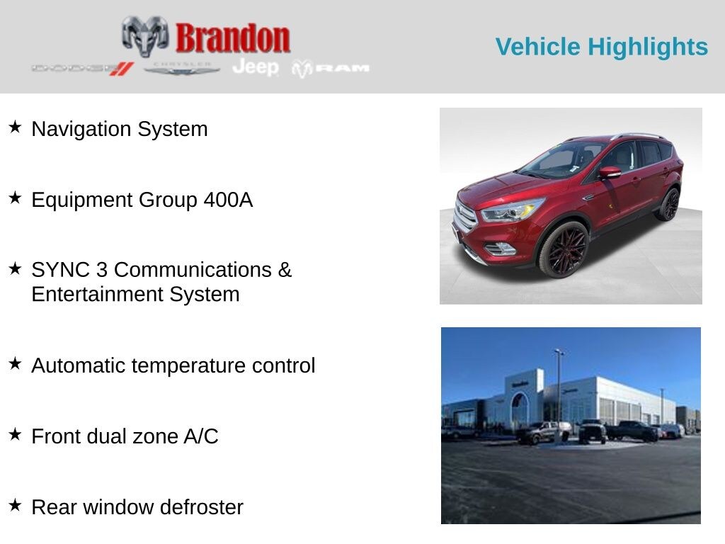 Certified. Ruby Red Metallic 2019 Ford Escape Titanium 4WD 6-Speed Automatic EcoBoost 2.0L I4 GTDi DOHC Turbocharged VCT 4WD, Automatic temperature control, Equipment Group 400A, Front dual zone A/C, Navigation System, Rear window defroster, SYNC 3 Communications & Entertainment System.