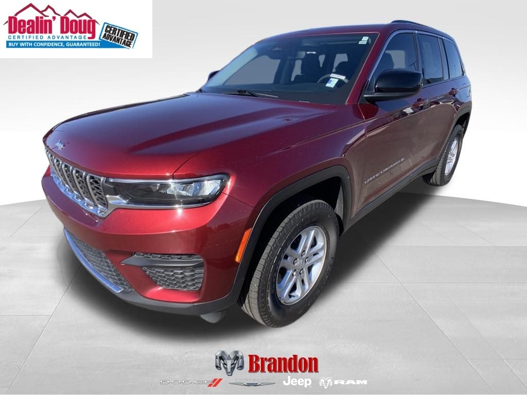 Certified. Velvet Red Pearlcoat 2023 Jeep Grand Cherokee Laredo 4WD 8-Speed Automatic 3.6L V6 24V VVT 3.6L V6 24V VVT, 4WD, 115V Auxiliary Power Outlet, Automatic temperature control, Heated Front Seats, Heated Steering Wheel, Luxury Tech Group I, Power Liftgate, Quick Order Package 23A Laredo, Radio: Uconnect 5 w/8.4" Display, Rain Sensitive Windshield Wipers, Remote Start System, Secondary Active Grille Shutters, Selectable Tire Fill Alert, Steering wheel mounted audio controls, Wireless Charging Pad.