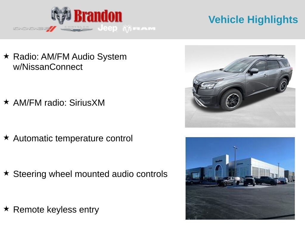 Certified. Gun Metallic 2024 Nissan Pathfinder Rock Creek 4WD 9-Speed Automatic 3.5L V6 DOHC 4WD, AM/FM radio: SiriusXM, Automatic temperature control, Radio: AM/FM Audio System w/NissanConnect, Remote keyless entry, Steering wheel mounted audio controls.